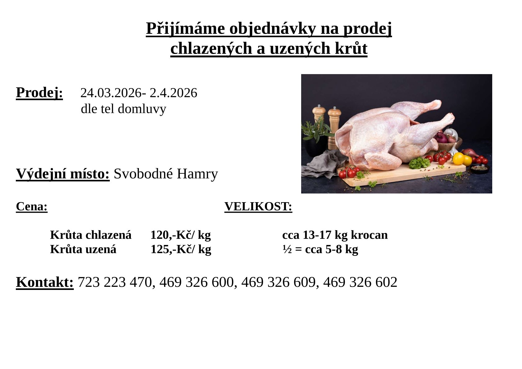 Nabídka chlazených a uzených krůt
